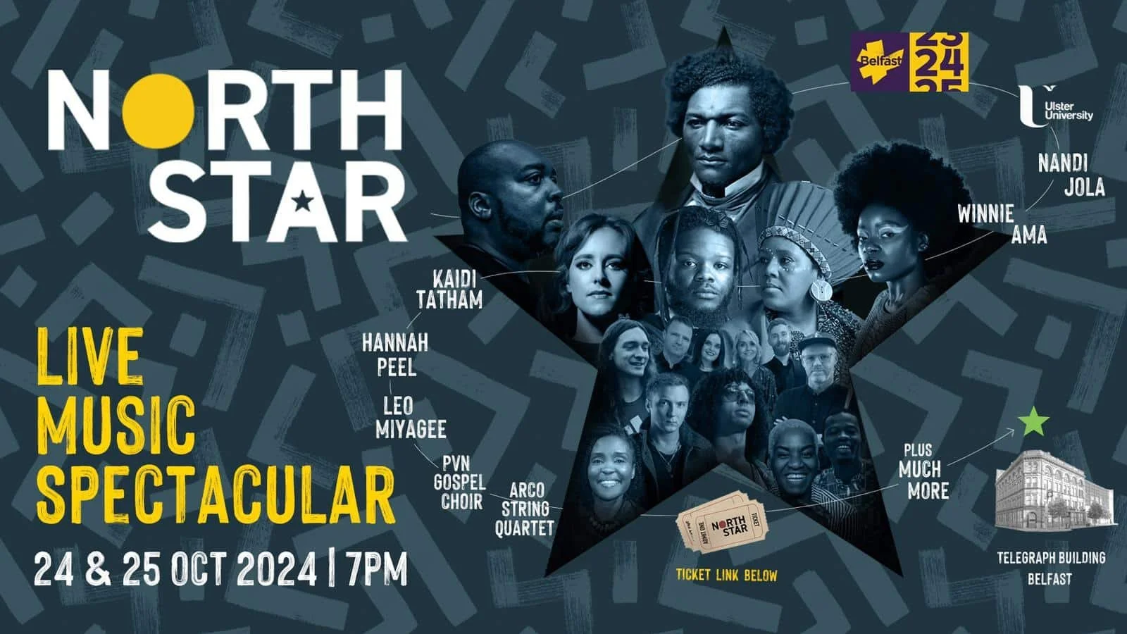 North Star (2024) — A live music spectacular produced by SoLab & Kwame Daniels for Belfast International Arts Festival. Inspired by writer and abolitionist, Frederick Douglass’s historic 1845 visit to Belfast. Douglass, considered a fugitive slave at the time, delivered a landmark speech, declaring, "wherever else I feel myself to be a stranger, I will remember I have a home in Belfast."